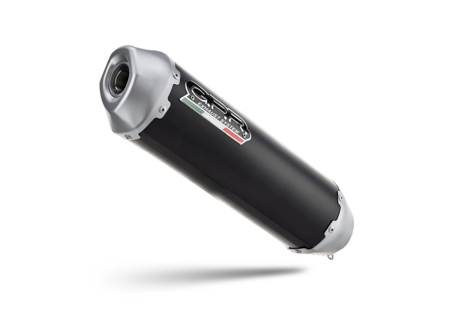 The Zontes E 125 GPR Pentascooter Slip-On exhaust delivers enhanced performance and sound. GPR crafts this slip-on exhaust system with premium 304 stainless steel construction. The exhaust features a matte black ceramic finish and brushed stainless steel endcaps. This Pentascooter slip-on exhaust includes a removable db killer and specific mounting hardware for direct fitment. The exhaust improves power output while reducing overall weight compared to stock components.
