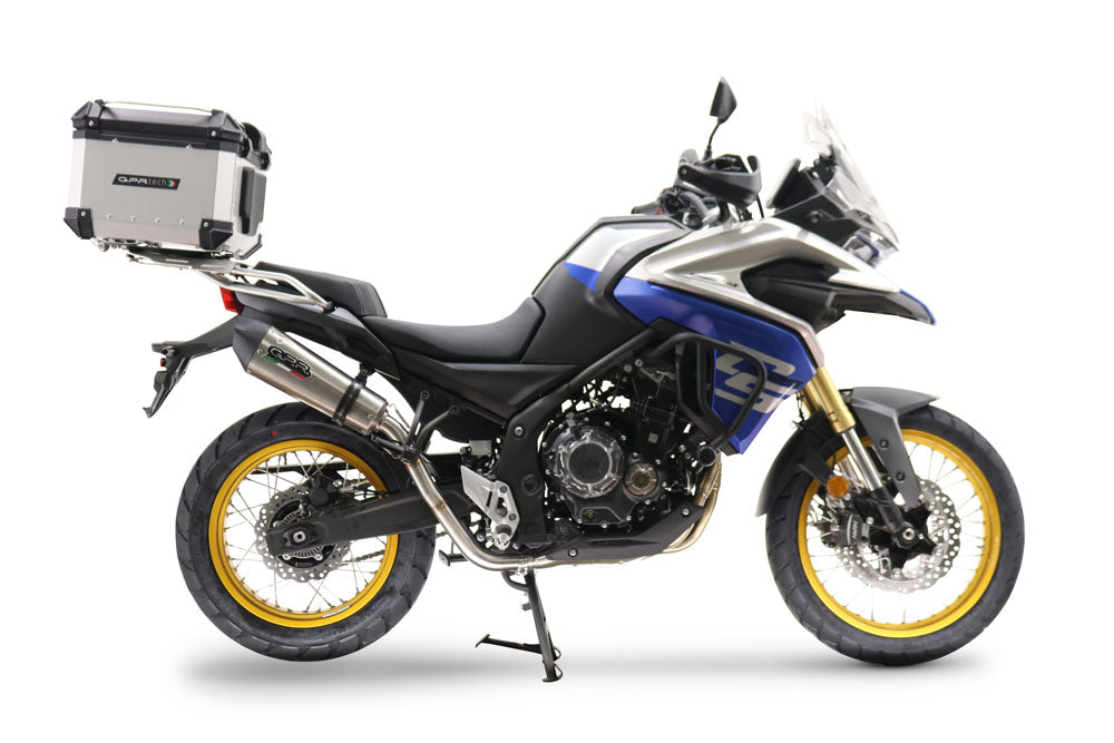 The GPR TECH Top Case for Voge 525DSX delivers premium storage solutions for adventure touring. This 55-liter aluminum case combines professional-grade construction with waterproof protection. The silver aluminum finish enhances the motorcycle's appearance while providing maximum storage capacity. The universal mounting system attaches directly to the original rear rack without modifications. GPR TECH engineering ensures reliable performance for extended touring applications.