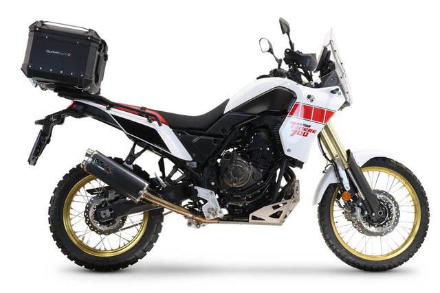 The Yamaha Tenere 700 Top Case from GPR TECH provides premium storage capacity for adventure touring. This 55-liter aluminum case delivers waterproof protection with professional construction quality. The black aluminum finish enhances modern motorcycle aesthetics while offering maximum storage space. GPR TECH engineering creates reliable performance for extended adventure riding. The universal mounting system adapts to the Yamaha Tenere 700 through a specific mounting plate configuration. This GPR TECH top case combines Italian craftsmanship with practical functionality for serious riders.