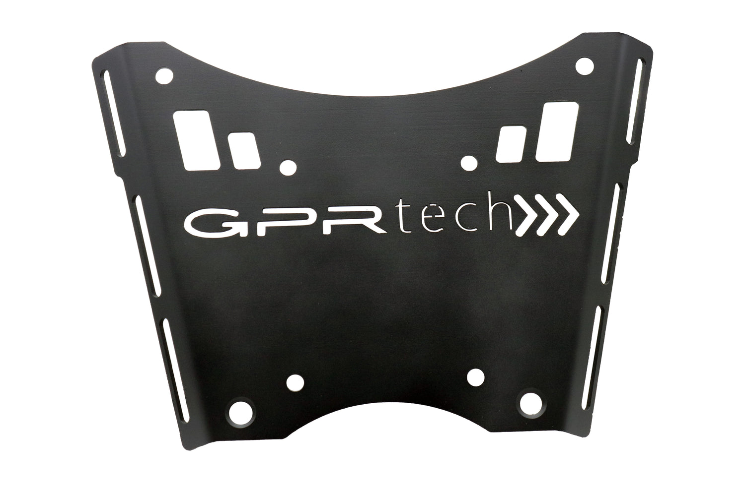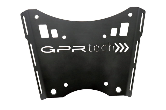 La placa de montaje para topcase KTM LC8 Adventure 1190 ofrece una fijación segura para las maletas GPR TECH ALPITECH. Esta placa de acero inoxidable se conecta directamente a los portaequipajes originales con cuatro puntos de anclaje. Proporciona un soporte estable para las maletas GPR TECH de 55 litros. La placa de aluminio negro se instala fácilmente con los herrajes incluidos. GPR TECH garantiza la compatibilidad con su línea de topcases ALPITECH mediante especificaciones de ingeniería precisas.